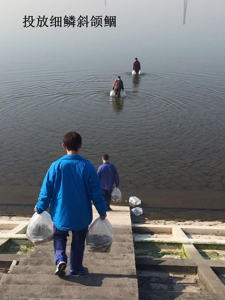 青草沙水库在今年开始尝试不定期“轮捕轮放”的生态调控模式。根据近年青草沙底栖动物监测数据显示,耐污物种类稍有增加,水库库底底质有所变化,底泥逐渐堆积。根据《非经典生物操纵放养规划建议》,需引入底层鱼类,保障水库水体生态系统平衡。近期投放底层鱼类细鳞斜颔鲴(俗称清道夫)约6000尾,同时在水库东堤投入控藻鱼苗(鲢鳙鱼)10000尾。