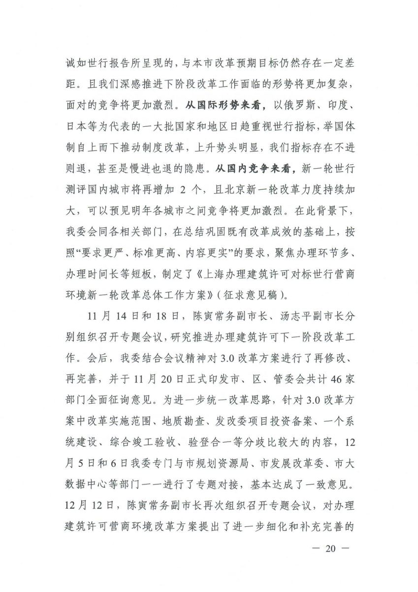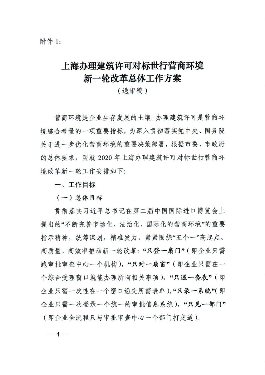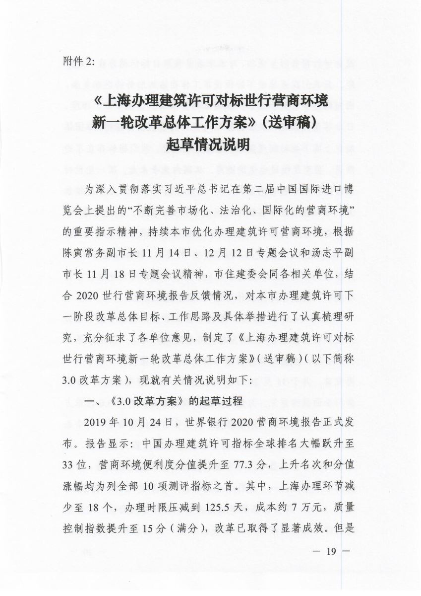 沪府办〔2020〕5号《上海市人民政府办公厅关于同意<上海办理建筑许可对标世界银行营商环境新一轮改革总体工作方案>的通知》